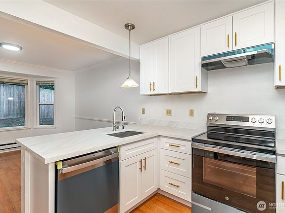 Step into comfort and style at this beautifully updated end-unit condo in highly sought-after Somerset Estates, nestled in the vibrant heart of Factoria Bellevue. This expansive 900 sqft, 1 bed, 1 bath home boasts a stunning new kitchen & bath with sleek cabinetry, quartz-style countertops, & brand new modern stainless steel appliances. Enjoy fresh interior paint, elegant vinyl plank flooring, modern LED lighting, a cozy wood-burning fireplace, & an inviting bay window that fills the space with natural light. With in-unit laundry, a private secure garage, community pool, & award-winning Bellevue schools including Newport High & Tyee, this move-in ready gem is just steps from Factoria Mall, T&T & minutes to I-90, I-405, & Downtown Bellevue.