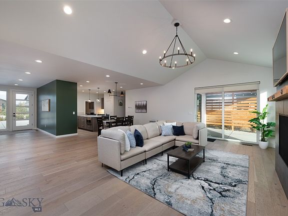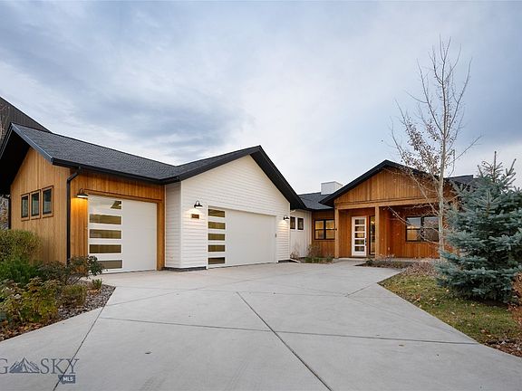 Single-level luxury living in coveted Flanders Mill. This 3-bedroom + office home combines custom design, functionality, and low-maintenance living. The oversized 3-car garage is a rare feature for a single-level home, offering abundant space for vehicles, storage, or hobbies. The private primary suite offers patio access, a spa-inspired bath with tiled shower, and a generous walk-in closet. Two additional bedrooms and a dedicated office provide flexible space for guests or remote work. Outdoor living is exceptional with a custom paver patio, built-in stone fireplace, covered seating area, and privacy fencing—all surrounded by professional landscaping. Additional features include a spacious mudroom with built-ins, large laundry area, central A/C, and included washer/dryer. Located in one of Bozeman’s most desirable neighborhoods with 36 acres of parks and trails, this is the perfect lock-and-leave property—stylish, functional, and move-in ready.