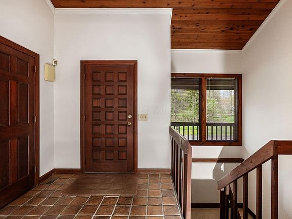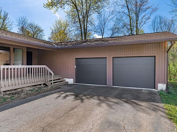 A beautifully unique, privately wooded ranch house on 5 acres, just minutes from Hoover Reservoir! This custom built, soft contemporary ranch is ready for your personal touch! Exquisitely designed with vaulted wooden ceilings and grand entry. The spacious primary suite has a private bathroom and deck, perfect for relaxation. Step outside and truly take in the privacy bamboo landscaping, endless possibilities and serenity of this property. Brand new Lennox furnace, new garage doors with Wi-Fi capabilities and 10 maple trees planted by the road for added privacy.