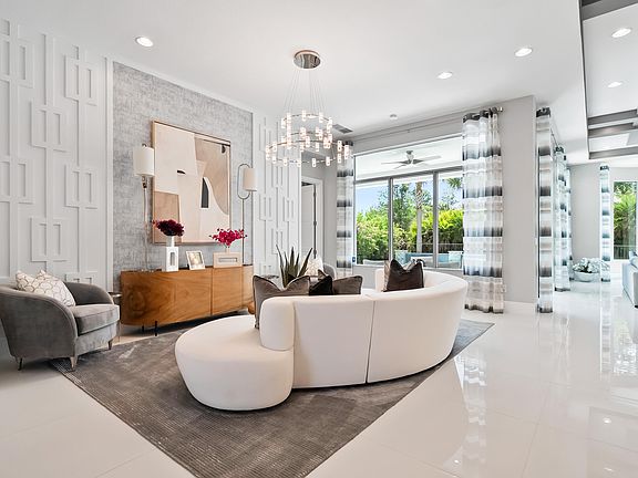 Three-car garagePrivate resort-style oasisSparkling poolSun-filled laundry roomsTranquil waterfall featuresCustom millworkGleaming white marble floors
