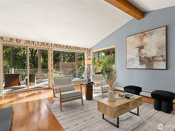 Mid-century characterPeaceful walking trailsLarge windowsMature evergreensSpacious patiosOpen living spaces