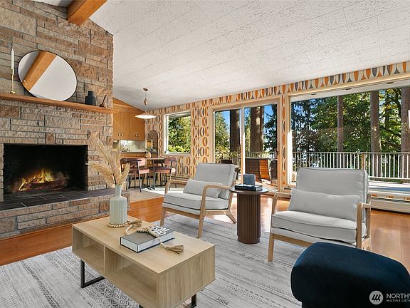 Experience Cooper Point living at its finest. This timeless mid-century modern home offers stunning Puget Sound and Mt. Rainier views, surrounded by 2.5 acres of private Northwest beauty. Enjoy peaceful walking trails, mature evergreens, and spacious patios perfect for entertaining or quiet mornings. Inside, sunlight fills the open living spaces with large windows, fireplaces, and mid-century character throughout. Ownership shows with a new roof, gutters w/ leaf guards, full septic system, fresh paint, new AC system, and new carpet. The property includes a 2-car garage + carport, RV parking, and room to garden or play. Minutes from shopping, dining, and the waterfront. Your own private retreat, move-in ready and waiting to welcome you home.