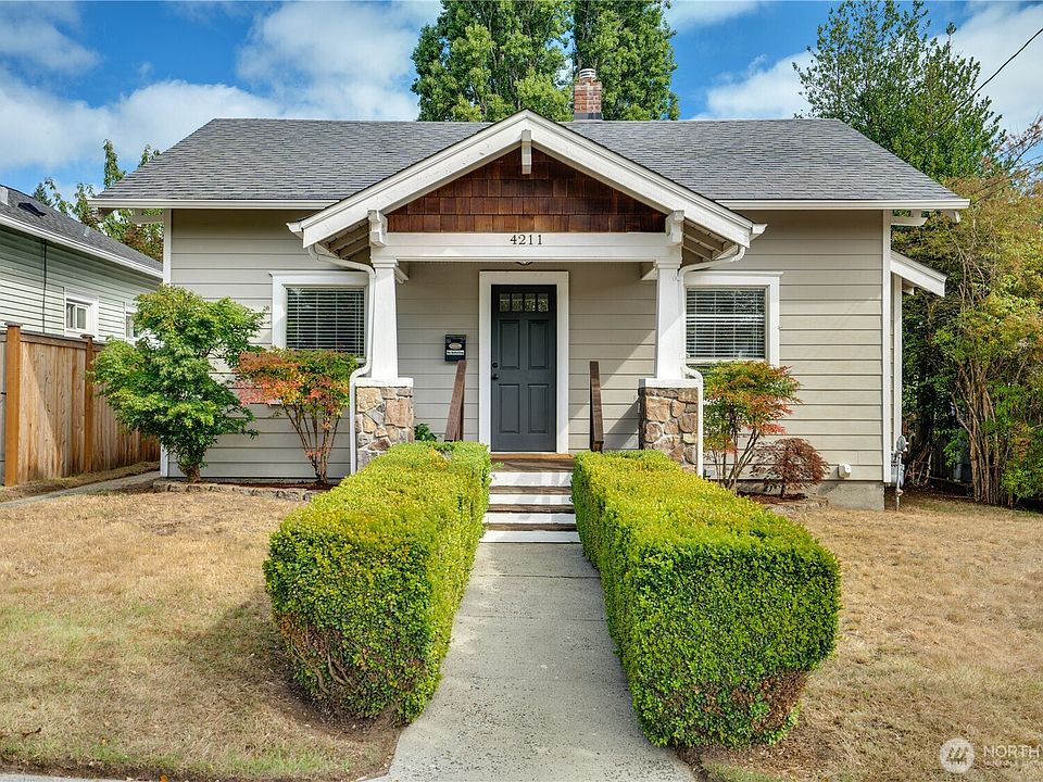 Lender-Paid 1-0 Buydown with Preferred Lender on Conventional Loan! Welcome to this charming North Tacoma Craftsman, ideally located just minutes from grocery stores, restaurants, coffee shops, and the Saturday Farmer’s Market. The main floor features a light-filled living room with fresh paint, primary bedroom, full bath, and an updated kitchen with a cozy eating nook. Upstairs you’ll find a spacious second bedroom and a bonus area with brand-new carpet (August 2025) perfect for an office, den, or playroom. Step outside to enjoy a private backyard with a one-car garage. The exterior entry to the basement offers added potential or explore the option of adding a DADU (buyer to verify with the City of Tacoma), a great opportunity!
