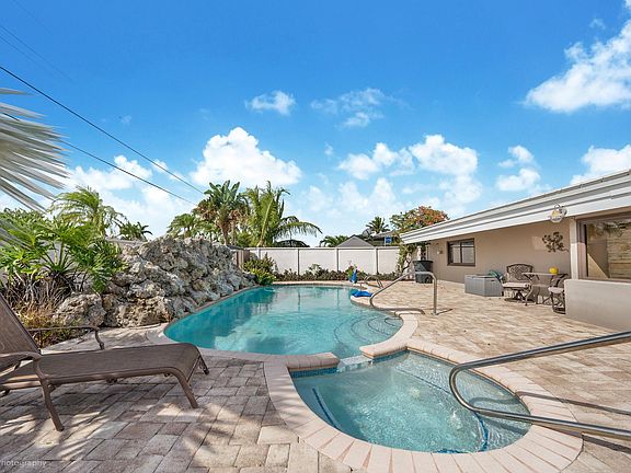 Nestled in the prestigious Venetian Isles neighborhood of Lighthouse Point, 4211 NE 26th Terrace presents an exceptional opportunity for those seeking to create their dream home. This spacious residence offers 2,529 square feet of living space, featuring 3 bedrooms, 3 bathrooms, and a versatile bonus room, making it an ideal canvas for customization. Positioned on a beautifully landscaped, generously sized lot, this home is a true sanctuary of privacy. The lush surroundings and mature greenery create a tranquil escape in the heart of the city. The outdoor oasis is complete with a stunning coral rock waterfall that cascades over the pool, a built-in spa for relaxation, and a charming sandbox for children to enjoy-- gatherings and entertaining. Built with durability in mind, the property is hurricane-ready with all impact-resistant glass throughout. The roof, approximately eight years old, provides peace of mind, while the hot water heater is just about five years old. The home is equipped with two air conditioning unitsone newly installed and the other approximately nine years oldensuring year-round comfort.