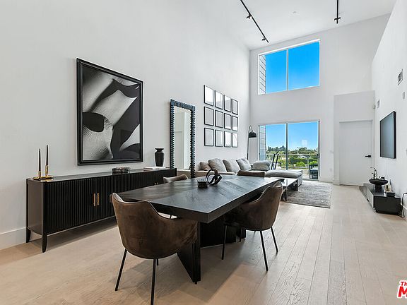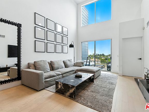 This stunning two-story penthouse offers 2 bedrooms, 2 bathrooms, plus a versatile loft (possible 3rd bedroom), with soaring nearly 20-foot ceilings. Walls of glass frame unobstructed city and mountain views stretching all the way to the Hollywood sign making this residence truly one of a kind. Designed with a sleek, contemporary aesthetic and recently renovated, the home is filled with natural light and features wide-plank white oak flooring throughout living spaces. The spacious living room flows seamlessly into the chef's kitchen, appointed with waterfall-edge Caesarstone countertops, a custom tile backsplash, stainless steel appliances, and a breakfast bar perfect for entertaining or everyday living. One patio extends from the open living and dining areas, creating effortless indoor-outdoor living. The primary suite is a tranquil retreat with a large walk-in closet and a spa-inspired en-suite clad in Carrera marble. A second bedroom also offers its own en-suite bath and custom closet, while the loft provides flexible space for a third bedroom, home office, or creative studio complete with its own 2nd private patio space. Additional highlights include in-unit laundry, central air and heat, custom lighting, two dedicated parking spaces with EV charging, and access to thoughtfully curated community amenities: BBQs, an outdoor fireplace, lounge seating, herb gardens, and citrus trees that create a serene urban oasis. Located in the heart of the Marina del Rey Arts District, this Silicon Beach adjacent residence is moments from Marina Marketplace dining and shopping, with easy access to the 90 freeway and LAX for a seamless coastal lifestyle.