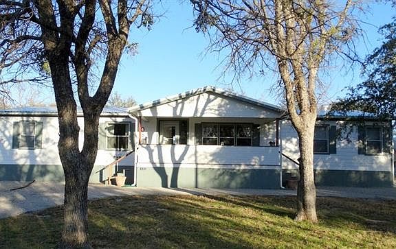 Beautiful Solitaire MH has new flooring thru out and a beautiful sunroom for relaxing. Sits on 6 lots bordered by streets front & back. Large back porch, storm shelter, Oversized carport beside home will hold boat & truck. Additional carport with attached storage building for your golf cart & yard equipment. Workshop & RV port. Home is totally covered in metal roofing with insulation under metal. Thunderbird Bay HOA has 2 boat ramps, pool and play area, all on Lake Brownwood
