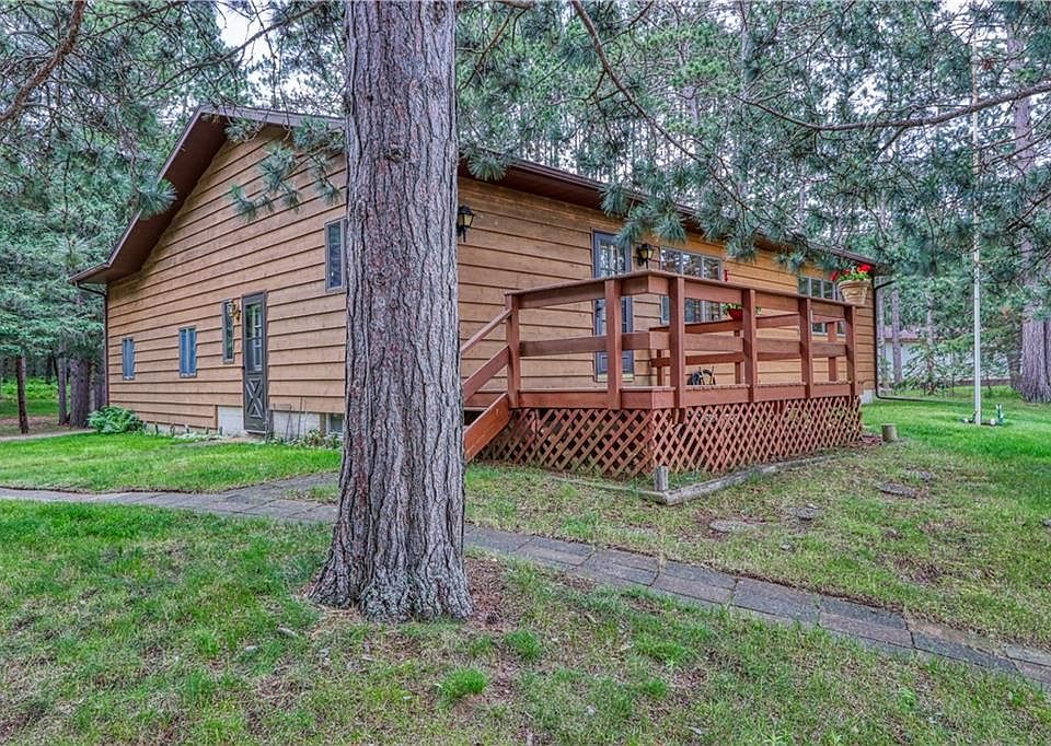 This well-maintained, solidly built lake home features 2 bedrooms, 1 full bathroom, a half-bath in the laundry room, and an additional shower on the lower level. The dining area and living room provides a nice view of the waterfront. The lakeside deck overlooks 234 feet of sandy bottom frontage on the 129-acre Birch Lake in Barnes, WI, part of the Eau Claire Chain of Lakes, with access to Upper Eau Claire Lake and Robinson Lake. Enjoy stunning westward-facing sunsets from this serene and private property. Storage is abundant with a 1-car attached garage, a 2-car detached garage complete with a sink and wood-burning fireplace, and an additional 1-car detached garage. Ideal for those seeking tranquility, relaxation, and a close connection with nature. Be sure to check out the virtual and video tour of the property!