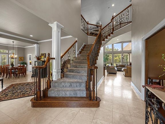 This elegant home surrounded by mature trees and its own pond, creates the perfect retreat with both luxury and tranquility. Inside, the formal living and dining areas are highlighted by crown molding, decorative columns, and plantation shutters. The newly remodeled kitchen showcases high-end appliances, a gas cooktop, and a butler’s pantry connecting seamlessly to the breakfast nook and dining room. The spacious living room boasts soaring ceilings, custom built-ins, and a gas fireplace.