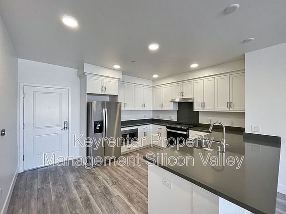 Welcome to your dream home in Fremont, CA! This newly constructed 2-bedroom, 2-bathroom residence boasts an open floor plan with new flooring throughout, fresh paint, and a large master bedroom with a walk-in closet. The completely renovated kitchen is a chef's delight, featuring granite and quartz countertops, custom cabinets with self-closing drawers, new stainless steel appliances, including a French door refrigerator and a pizza oven. The bathrooms are modernized with dual sinks, a walk-in shower, and a steam room. Energy efficiency is a key feature with a Nest Home System, double-pane windows, and a car charger for electric vehicles. Enjoy the incredible views from your balcony or the common deck area. The property is gated and secured, with designated guest parking and an automated parking garage. Amenities include a fitness center, a dog park with a dog wash station, and playgrounds. The drought-tolerant landscape is easy to maintain. The location is unbeatable, adjacent to parks and within walking distance to a farmers market, Walmart, and Safeway. Costco is just a 5-minute drive away. This property is cable-ready and offers a BBQ/outdoor lounge for your enjoyment. Experience the best of Fremont living in this stunning new home!