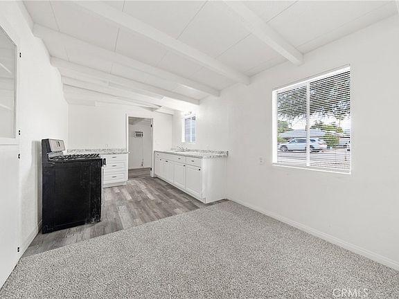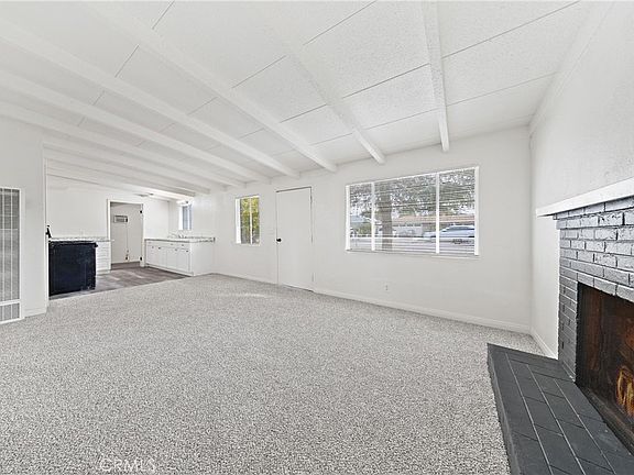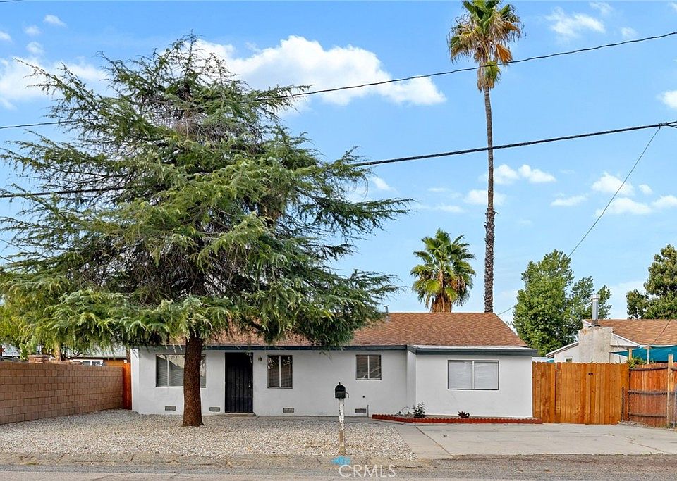 Freshly renovated 3 bedroom 1 bath home on large lot located in desirable Southeast Hemet. Living room has beamed ceiling and wood-burning fireplace. Kitchen has new granite-look laminated counter tops, gas stove, and built-in bookcase perfect for cookbooks and knickknacks. Full bathroom with new vanity and toilet, shelves, and tub/shower with decorative glass tile-work. Inside laundry/mud room. Linen closet. New paint and carpet. 3 wall ACs and gas wall furnace. Front and rear security screen doors. Covered patio. Block wall fencing on 2 sides. Side yard access to backyard wide enough for a car or a small boat or trailer. Rock-scaped front yard with huge shade tree.