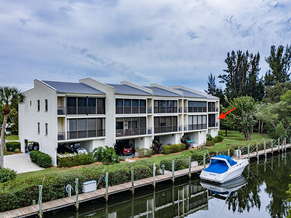 WATERFRONT - BRING YOUR BOAT!! THIS UNIT COMES WITH ITS OWN 40-FOOT BOAT DOCK THAT ACCOMMODATES UP TO A 40-FOOT BOAT!! NO FLOOD DAMAGE FROM RECENT HURRICANES!! VERY UNIQUE LOCATION WITH SAFE MOORING FOR YOUR BOAT!! Welcome to your dream WATERFRONT coastal retreat in the heart of Cortez, Florida! Only 1 mile to the white sand beach!! This is an END UNIT which has extra windows and tons of natural light! This charming two-bedroom, two-bathroom waterfront condo offers an unparalleled combination of comfort and breakwater access. Nestled within the serene community of Smugglers Landing, this property boasts direct access to the pristine waters of the Gulf of Mexico, making it an ideal haven for boating enthusiasts and beach lovers alike. As you step inside, you'll be greeted by an open-concept living space with abundant natural light. The spacious living room features large sliding glass doors that seamlessly blend indoor and outdoor living, leading to a private balcony where you can savor the panoramic water views. Enjoy watching the manatees, dolphins and more from the balcony. Walking distance to some of the best beaches on the planet! You'll love the feel of Anna Maria Island and Bradenton Beach with great restaurants and so many fun things to experience! The kitchen has stainless steel appliances, granite countertops, custom cabinetry, and a convenient breakfast bar. The master suite is a true sanctuary, offering a tranquil escape with its own private balcony access, ample closet space, and an en-suite bathroom. The second bedroom is equally inviting, perfect for guests or as a versatile space for a home office, with an adjacent well-appointed bathroom. This condo also features an in-unit laundry, ample storage, separate storage shed with electric and a 2-car covered parking space for your convenience with EV car charger. The community amenities include 2 sparkling waterfront pools, a fitness center, tennis courts and beautifully landscaped grounds. Enjoy the best of Florida living with nearby dining, shopping, and recreational opportunities, all within a short drive from your doorstep. Don't miss your chance to live in a small slice of paradise in Cortez, where every day feels like a vacation. Schedule a private showing and experience the coastal elegance and charm of this exceptional waterfront condo. This unit is Fully Furnished Just bring your clothes and personal items - 5 month minimum rental period