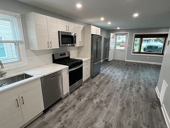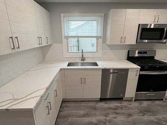 This large 2 bedroom single family home is freshly remodeled with no detail left behind! Walk into your spacious open concept living area with large living room and eat in kitchen. The chefs kitchen has beautiful white woodgrain cabinets with sparkling quartz countertops. Brand new high efficiency stainless appliances, complete with range, microwave, dishwasher, and French door refrigerator. Both bedrooms have good size closets and big windows for lots of natural lighting. The bathroom has a beautiful tile flooring, tub surround, and backsplash. It also features a modern new grey vanity. The large mudroom at the rear of the home comes with a utility sink, washer, and dryer, which leads out to a large backyard that is partially fenced with a slab that can be used as a patio or for additional parking. There is a 2 car detached garage at the rear of the property. You do not want to miss out on this home that is conveniently located near shopping, restaurants, parks, and just 7 minutes from Lake Michigan and Downtown Racine.