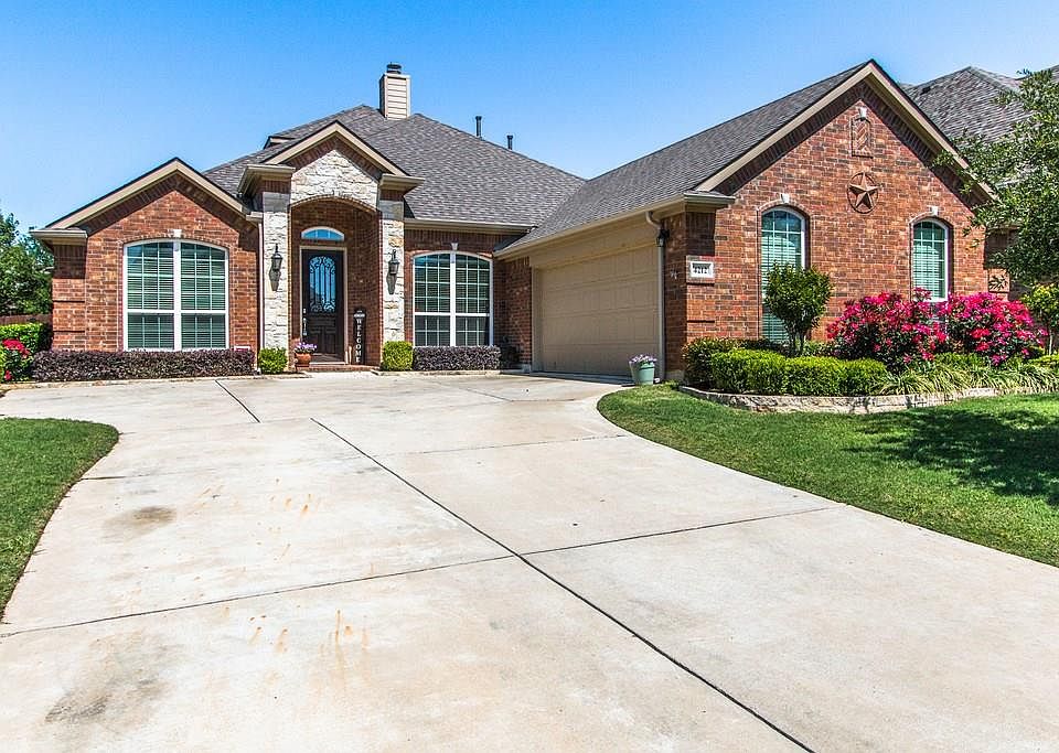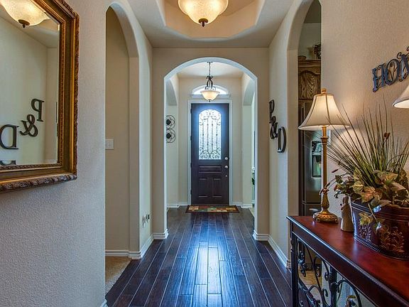 Gorgeous, like new 1.5 story home! The tall, wooden front door welcomes you in with wood flooring & elevated ceilings complimented by tasteful archways! The kitchen is a chef's dream with granite counters, ample cabinet storage, large island, ss appliances, breakfast bar & nook, & lots of natural light! The living room is centrally located with a beautiful stone fireplace. The Master Suite is separate from the other bedrooms & offers a quiet retreat complete with sitting area with bay windows, a large shower, garden tub, & separate vanities! There's 2 more bedrooms downstairs & another BR or flex room on the 2nd floor! Oversized utility room, 2 car garage & covered patio make this home a must see!