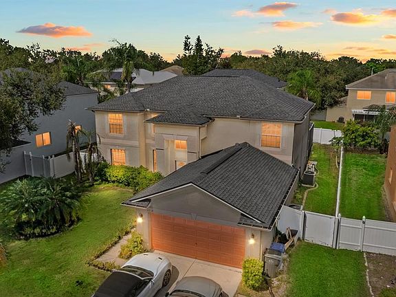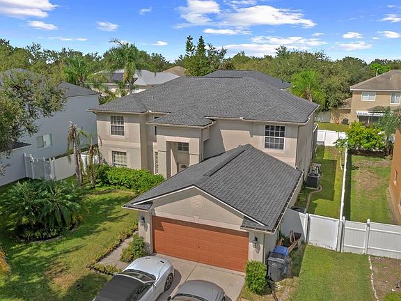 Welcome to this 4/3 Valrico home with an extra DEN/OFFICE and a POOL with a huge screened lanai! Roof (2020), Two HVAC's (2022, 2024) New Pool Screen & second Screen Door added (2024).....New Microwave & Range (2025).....New garbage disposal (2025).....Newer LVP flooring in Living Room, Den, Laundry Room, and all 3 bathrooms! Rain Gutters added in 2022. Backyard is completely fenced-in with newer VINYL FENCING. As you enter through the front door, you'll immediately appreciate the grandness of this home! The ceilings in the foyer are two-story, and the gorgeous chandelier adds beauty and sparkle. An elegant staircase winds around the foyer, and high windows fill the home with natural light. The kitchen is open to the large great room, and the entire first floor is so ideal for entertaining. From the kitchen and great room, you have views of the enormous screened-in POOL & LANAI....and there are two sets of sliding glass doors for ease of coming in and going out. The kitchen features TWO pantries, granite countertops, stainless appliances, and ample cabinet space paired with the two pantries. There are also additional cabinets in the island as well as the bar that overlooks the great room. Also downstairs are an additional DEN/OFFICE space.....One full bathroom.....and the laundry room. What a great setup!!! The Primary Suite is upstairs...and it's a massive 29'x19' room! The Ensuite features a relaxing Garden Tub, Walk-In Shower, Double Sinks, and a private water closet too! And the BEST feature of the Primary Suite is the EXPANSIVE WALK-IN CLOSET! You could actually fit a whole living room set in this closet, and the adorable chandelier will stay! There are 3 additional bedrooms upstairs with a full bath in the hallway. Buckhorn Preserve is zoned for Excellent Schools....just 10 minutes from endless DINING & SHOPPING....and only a 30-minute commute to Tampa. Oh and Disney is just an hour away! There's a FLOOR PLAN in the photos...and you must see the Virtual Tour!