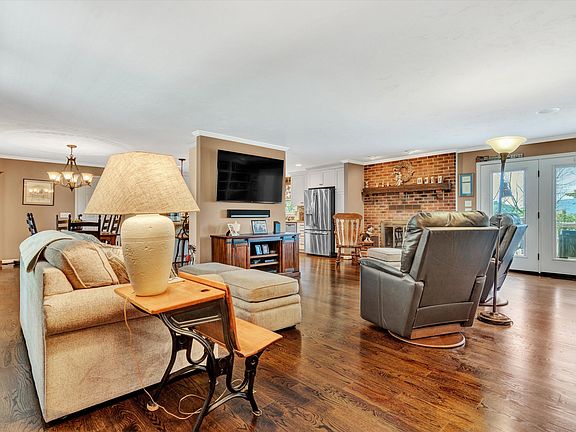 Fantastic ranch in sought after ''Falling Creeks Estates'' 3 spacious Bedrooms. Nice size living rm w/lots of built in book shelves, gas log fireplace plus wired for surround sound. Open floorplan. Stunning custom kit w/beautiful white cabinetry, granite countertops, double oven, recessed lighting, farmhouse sink, huge center island, stainless appliances plus induction cooktop. Gorgeous wood flooring throughout. Large primary bedroom w/updated private bath, double closets w/ lots of custom shelving. Updated interior & exterior lighting. New carpeting in bedrooms 2021. Bathrooms updated 2021. Huge recreation rm on lower level w/gas log fireplace. 2 large storage rms. Deck overlooking a beautiful backyard w/ mountain views. New architectural roof. 2 car garage. Sit on over 1/2 acre lot.