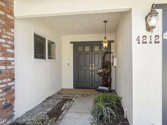 This spectacular 5 bedroom, 3 bath, home, nestled above Ventura College, at the end of gorgeous Gettysburg Street in a very child friendly cul-de-sac. In addition to enjoying the perks of no backyard neighbors, this wonderful home is situated on an elevated lot, which provides extra noise reduction from Loma Vista (only 2 lanes here, not 4). Spend time in the private jacuzzi while taking in the natural beauty of this gorgeous Ventura gem in a highly sought-after neighborhood. This 2,839 square foot home features a kitchen with new quartz countertops, professional grade appliances, and an abundance of storage. Skylights adorn the extra vaulted ceilings in the living room, and the dining room's dual sided fireplace and built-in bar are sure to make for great entertaining in this bright and airy home. The homes' four bedrooms- including one ensuite with an amazing spa like shower- are all conveniently located on the ground floor, with an added bonus bedroom on the second level. Seller has a JADU conversion design by adding closet and bathroom in attic, next to fifth bedroom. Side door with enclosed stairwell completes separate entrance. Ask about the 2-bedroom 1 bath ADU design as well! The exterior of this lovely home was recently repainted, new vinyl windows were recently installed, and plumbing fixtures have been updated! Come imagine the possibilities in this peaceful and charming home!