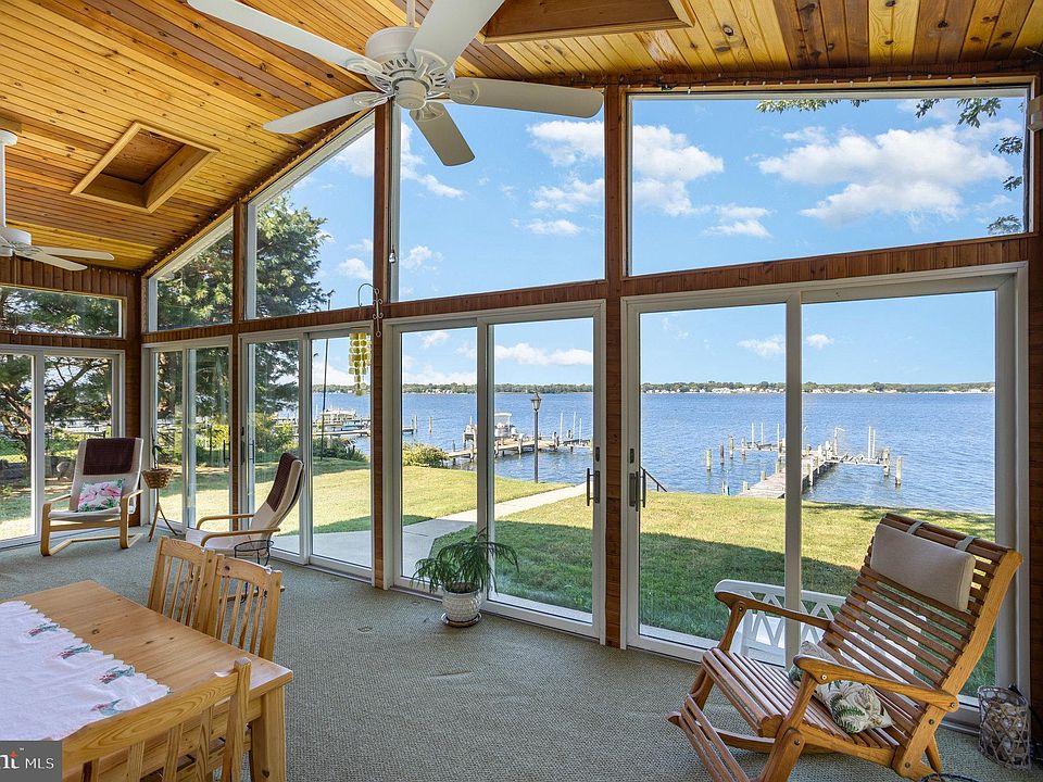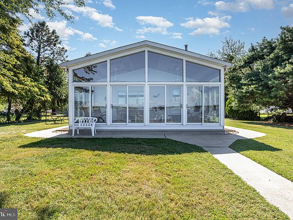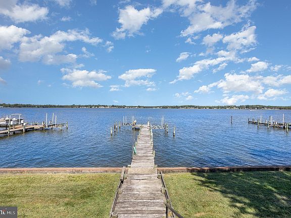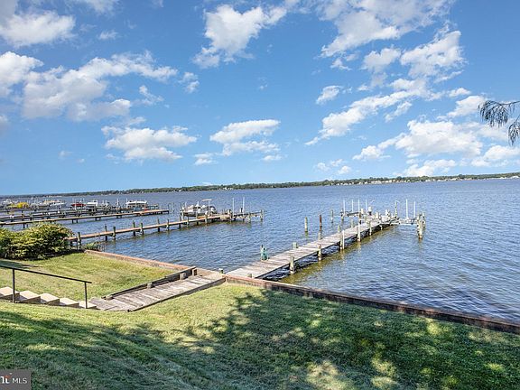 Waterfront Cape Cod with Private Pier and Stunning River Views! Enjoy serene waterfront living on a nearly mile-wide stretch of river with good depth—no flood insurance required thanks to excellent elevation! This charming home features a private (nearly 100-ft) wide pier with water and electricity, two boat lifts (one operational), and a durable concrete bulkhead with drains. Located on a quiet dead-end street with RC20 conservation zoning across the way, this property combines privacy, charm, and waterfront lifestyle. There is ample parking and the fenced yard includes a pool, three sheds, a carport, and a detached two-car garage with wood stove and electric. Inside, the main level offers a spacious living room with a wood stove, a dining room that flows into the kitchen, two bedrooms, and a full bath. A three-season room with cathedral ceiling showcases unobstructed water views, while the covered porch provides a welcoming entry. Upstairs, you'll find a large bedroom overlooking the water and a walk-in attic for additional storage. The lower level has another bathroom, laundry, wood stove and plenty of extra space. Measurements approximate—buyer to verify.