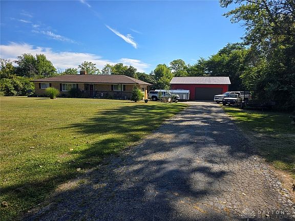 Talk about Location... this Delightful 4-bedroom brick ranch is sited on a 1-acre park like setting & surrounded by the 2,384-acre Sycamore State Park! Hiking Trails, Wildlife & Deer right out your back door or just enjoy from your enclosed porch or patio! See the attached photo map for permitted hunting, fishing & camping sections of this State Park. The Wanderlog website states this park is a fantastic destination for outdoor enthusiasts, with its expansive open fields & dense forests offering walking, biking & horse trails. Enjoy camping amidst beautiful scenery near the water, an ideal location for nature lovers seeking a peaceful retreat. It just doesn't get any better than this - PLUS the full, partially finished walk-out basement & the pole barn are added bonuses! All of this and a bunch of nice updates: You will love the hardwood floors! The large kitchen was remodeled boasting a new stainless farm sink, cabinets, countertops and flooring. All kitchen appliances stay. Replacement windows! The large primary suite is secluded & offers a lot of space. The living room has an abundance of natural light. Two additional nice size bedrooms with nice closets and built-ins are on the opposite side of the home - adding to the privacy! The hall bath has been nicely updated & has nice tile flooring. The sunroom off the kitchen/dining room area offers a light-filled space - a great space to relax and enjoy the parks' view. The lower level includes a family room and an additional 4th bedroom/office, plus plenty of storage and a laundry room. The house features a whole house filtration system and a 2023 water softener. A new heat pump in 2021. The house also has oil for back-up heat! The 28x40 pole barn was built in 2022 & boasts a 16ft insulated overhead door, poured concrete floor & hurricane resistant trusses. Brookville Schools offers Out of District Tuition - call for confirmation or visit their website for the costs! Hurry on this wonderful home!
