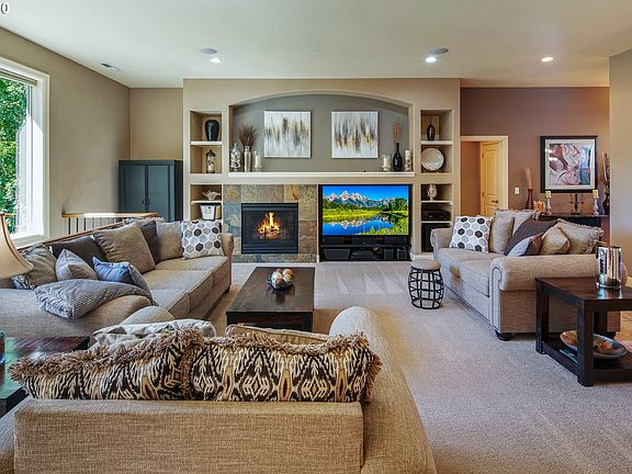 - RoomFamilyRoomFeatures: Fireplace, High Ceilings, Wall to Wall Carpet, Built-in Features