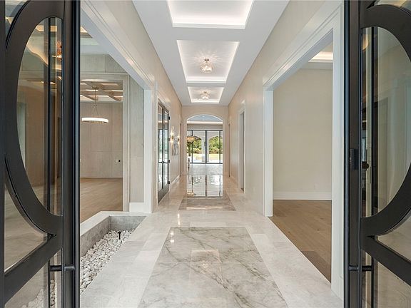 Contemporary Masterpiece on one of the few remaining golf course lots in Miramont. Rarely does a home of this scale and quality become available. An astonishing foyer hints at the craftsmanship and drama you'll find inside. From the stunning inlaid marble floors to the finely detailed ceilings to the impactful lighting, all were selected to make a statement. An expansive dining room with floor to ceiling windows beautifully compliments the formal sitting area reached by a bridge over a delightful water feature. With a full butler's pantry adjoining the dining room, entertaining is elegant and effortless. A wood-paneled office adjoins the formal areas. The casual living spaces are no less stunning with an open kitchen, casual eating area and a living space featuring a lit marble waterfall bar and warm wood built ins. A wall of steel windows and doors offer expansive views of the golf course beyond the calming blue waters of the pool. The owner's suite offers incomparable luxury with a marble wet room featuring a double shower and a soaking tub, as well as a stunning dressing room. With three bedrooms downstairs and one guest room upstairs off the gameroom, all have fantastic golf course views. A walk-in safe/safe room with concrete block walls is ventilated for your convenience. Outdoors enjoy multiple terraces, covered patio spaces and a pergola while enjoying the outdoor kitchen, in-ground pool and hot tub - all overlooking the golf course.