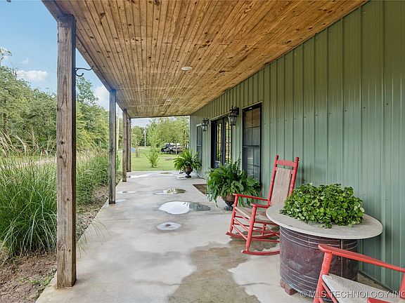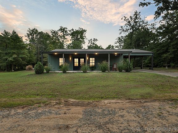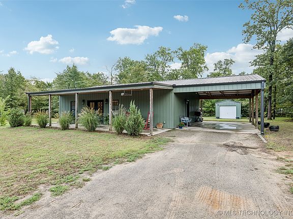 Lake life awaits! Discover the perfect getaway in this 2 bedroom, 2 bath home on almost one acre located just a few blocks from Lake Eufaula's beautiful sandy beaches. Nestled in a tranquil community, this property offers both relaxation and convenience - close to Push Hill Cove, Sandy Bass Bay, and just across the water from Belle Starr Marina for easy boat access and docking. Step inside the double entry doors to an open concept living space filled with natural light thanks to its beautiful custom windows. The gorgeous kitchen is a true centerpiece, featuring floating shelves, a spacious island with abundant storage, and an easy flow for entertaining. A versatile dining/sitting area with charming built-in bookshelves surrounding the doorway adds character and flexibility. The oversized laundry/mudroom doubles as a coffee bar or butler's pantry, offering exceptional function and style. The private primary suite boasts sliding barn doors, a walk-in closet with built-in shelving, and en-suite bath with zero entry shower. Outside, you'll find thoughtful amenities designed for both everyday use and entertaining - large 16x30 carport area - ideal for parking, events, or gatherings. Multiple exterior faucets, including a hot/cold faucet for rinsing off, and electrical outlets for convenience. Behind the carport is a detached one car garage with 220 and 100 amp electric service plus a rear lean-to for extra storage. Whether you're looking for a weekend retreat or a full time lake home, this property combines comfort, style, and unbeatable proximity to the lake!