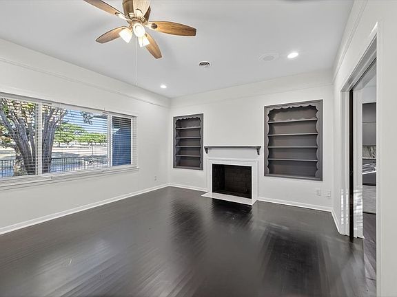 Move-in Ready! Beautifully updated 4-bed, 2-bath home directly across from Rosemont Park! Features include fresh interior and exterior paint and dual driveways for plenty of parking! Wrought iron fencing in the front gives the home great curb appeal! Wood floors in living, dining, and bedrooms, and tile floors in the kitchen and baths. The kitchen features wood cabinets, Recessed lighting, Granite countertops and backsplash with a gas range! The utility closet for a full size washer and dryer is hidden behind a stylish Barn Door. The primary bedroom is LARGE and the other 3 bedrooms are nice size. Both bathrooms have updated vanities and fixtures with granite countertops. The HVAC system is updated for efficiency and comfort. HUGE back yard! Spacious Outdoor Living Area - the Large Concrete Patio has a cooking and grilling area that is perfect for entertaining! Great location, close to schools, parks, and shopping!