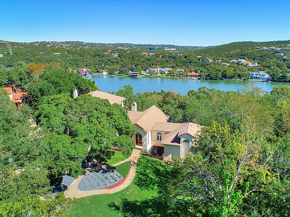 Seated on 1.45 acres, this inviting Lake Austin waterfront home delivers the utmost in indoor-outdoor living with a prime boat slip on Rockcliff. Stunning lake views impress throughout, culminating in the spacious 2nd-floor balcony overlooking the lake. A dynamic open floor plan with soaring ceilings and abundant natural light creates a clean and bright atmosphere. Recently updated, the kitchen features a breakfast area that opens up to the family area with a fireplace. A stately second fireplace adorns the formal living area, with a built-in wet bar providing the perfect space for entertaining. Retreat to the large and private first-floor master suite. Step outside and unwind in the elegant and private stone pool and spa. Abundant storage throughout and a 3-car garage with an electric car plug-in. Take advantage of the property's private boat dock and enjoy a sunset cruise around the lake. Located in the award-winning Eanes School District.