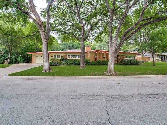 Modern feel to a ranch style gem in Tanglewood! This beautifully updated 3 bedroom 2.5 bath home features: great storage, large bedrooms, plantation shutters, stunning granite counters in the kitchen, upgraded stainless appliances, breakfast bar, Brazilian Cherry hardwoods, two living areas, private oasis of a backyard. Backyard has beautiful landscaping including lighting, pebble-tech pool with decorative flagstone decking, with a large patio to relax, and entertain by the pool. There is extra parking to the side of the garage, and an additional workshop at the back of the garage. This amazing home sits under a large canopy of trees, beautiful front yard and a large covered front porch.