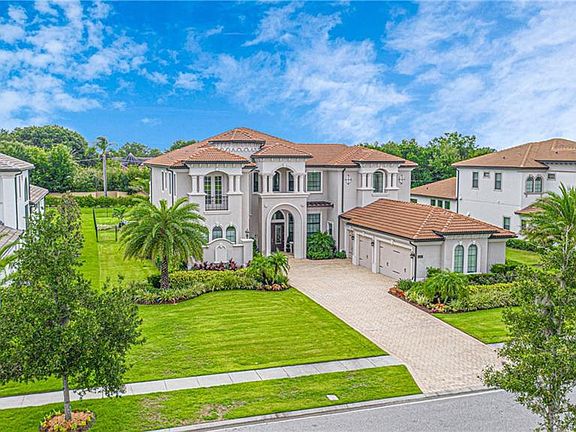 Back On the Market Due to Buyers' Inability to Sell Their Home. Great opportunity available again! Welcome Home "VILLA MILANO" can be yours! Located at luxury gated CASABELLA Windermere upscale community on a premium lot. The floor plan features 5 bedrooms,5 full bathrooms,3 half baths and a 3 car garage. The formal entry and living room boasts two-story ceilings with stunning crystal chandeliers with two-story radius windows with custom drapes overlooking your lanai and wonderful pool view. The Beautiful custom brand new pool and jacuzzi feature water cascading into the pool, and a salt water system with smart app to control from phone. Pool features 3 waterfalls, 2 bubblers on the beach area and 14 lovely color options/lighting effects for every mood. The gourmet kitchen features an expansive center island leading to the family room, with natural gas for cooking, 42" cabinets and stainless steel appliances. A spacious lanai, gorgeous summer kitchen and island are easily accessible from your family room with expansive sliding glass doors, wonderful for indoor/outdoor living, and a wet bar creates the perfect entertaining space.The first floor master suite encompasses spacious dual walk-in closets, oversized shower with separate his an her bathrooms and exercise room. This home also includes a private first floor guest suite and 3 additional en-suite bedrooms, one being a second master with spa-style bath and private balcony overlooking the pool. Bedrooms 3 and 4 offer a spectacular sunset pond view. Other outstanding features include lush landscaping. You will feel like you are at a private resort.