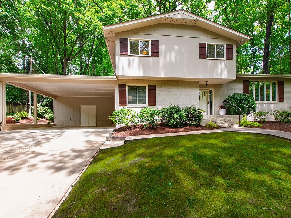 This spacious 4-bedroom home, tucked away in the established Oak Park neighborhood, has been lovingly cared for by its owners for nearly fifty years. A unique and open floor plan sets this home apart with features like vaulted ceilings, large windows, and multiple living spaces. The kitchen was completely remodeled in 2024 and presents like new. With beautiful new cabinetry, quartz countertops, and all new GE appliances it is an entertainer's dream. The kitchen and breakfast area flow seamlessly into the family room. Off of the family room you will also find a fourth bedroom that could easily function as an office. The backyard is a true oasis, filled with mature trees and landscaping. Enjoy the convenience of a spacious 2-car carport with an additional third parking space to the side. In the basement you will find a large unfinished area that could serve as a workshop or simply storage space. Choose to join the neighborhood pool, or spend your evenings walking or biking the greenway that is right by the home. With close proximity to shopping, dining and entertainment options, the location can't be beat.