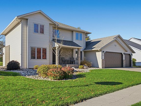 Beautiful 2-story home nestled in an established neighborhood, with a private backyard retreat! This well-maintained property features metal and brick siding, plus impressive updates throughout including a sheet rocked and insulated 5-stall garage (968 sq ft) with new garage doors, new roof, new gas furnace, new water heater, new A/C, and a battery back-up sump pump—move-in ready with peace of mind!