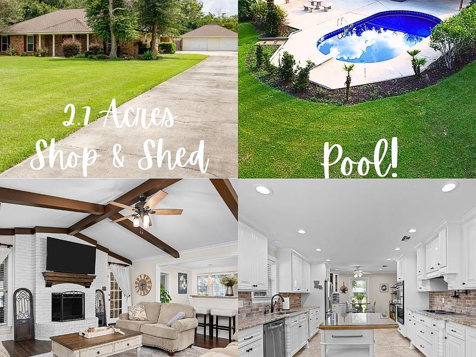Country Charm Meets Modern Comfort on 2.7 Acres! Nestled in the heart of Prairieville just minutes from Galvez, this 3-bedroom, 2.5-bath home offers 2,183 sq ft of beautifully remodeled and updated living space on nearly 3 beautiful acres. The open floorplan features beamed ceilings, a wood-burning fireplace, and no carpet throughout. The chef’s kitchen boasts granite countertops, custom cabinetry, a center island, and even a pot filler! The spacious primary suite includes a walk-in closet and spa-style bath with double vanities and separate shower. Energy-efficient upgrades include R-19 exterior wall insulation, double attic insulation, and insulated windows. There's even a central vacuum system. Step outside to your private oasis—featuring a newly refinished in-ground pool, covered and open patio areas, and plenty of room to entertain or relax. Need space for your hobbies or toys? A 30x20 detached garage and 16x24 storage shed have you covered. No Carpet! Fridge, washer, & dryer are negotiable. 100% Financing Available! Don’t miss your chance to own this peaceful, upgraded home in one of Ascension Parish’s most desirable areas—schedule your private tour today!
