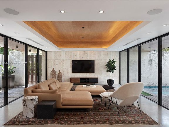 Stunning Architectural Digest home on a quiet street in Coconut Grove. Mia Cucina kitchen cabinetry, bathroom vanities, bedroom closets, and hidden-hinge doors throughout. Sub-Zero and Wolf appliances. Limestone and white Oak floors. Bamboo wood ceilings with Delta light fixtures. Beach-entry heated saltwater pool and Jacuzzi with outdoor summer kitchen. Smart home system, 2-car garage, full-house generator. Walk around the corner to Merrie Christmas Park. Enjoy the Grove’s luxury lifestyle including top schools, waterfront parks & marinas, great restaurants & entertainment, and boutique shops in the village. Quick drive to Downtown, Coral Gables & Miami Beach.