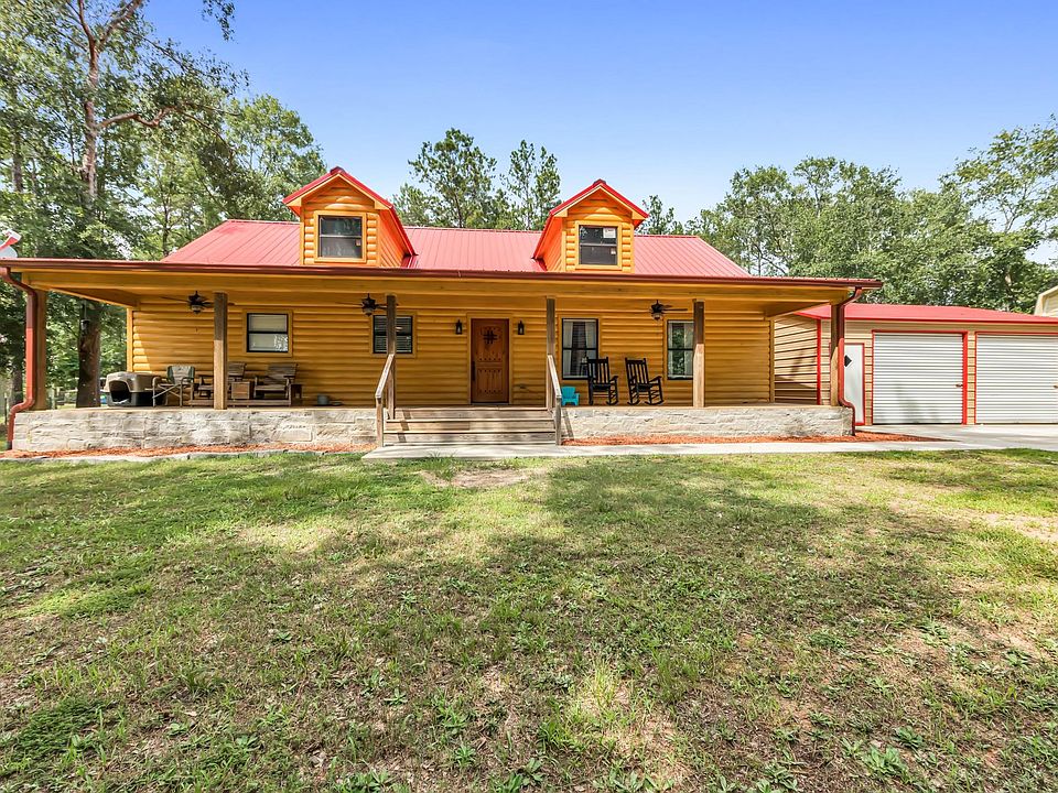 Welcome to your dream home nestled on 2 beautiful acres in the serene Peach Creek Plantation! If you've ever desired the charm of a log cabin w/o the hassle of maintenance, then this stunning property is the perfect fit for you. This inviting home features 3 spacious bedrooms & a loft, offering plenty of room for family & friends. The open floorplan creates an effortless flow between the kitchen, living room, & dining area, making it an ideal space for entertaining loved ones. Abundant windows bathe the interior in natural light, ensuring a warm & welcoming atmosphere throughout. Step outside to your covered front & back porches, where you can relax w/ a cup of coffee & savor the tranquility of nature. The neighborhood enhances your lifestyle w/ beautiful parks, scenic ponds, & year-round social gatherings. Don’t miss this rare opportunity to embrace a peaceful country lifestyle w/o the upkeep of a traditional log cabin. Call me today to schedule your private showing!
