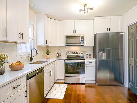 Amazing renovated home back a long lane with private woods surrounding an open lot! Private rear deck, full lower level and more! Stunning brand new kitchen white shaker cabinetry with solid quartz countertops and brand new stainless steel appliances! New flooring, lighting, molding and more. Cold Central Air! ABSOLUTE MUST SEE MOVE IN READY PROPERTY!