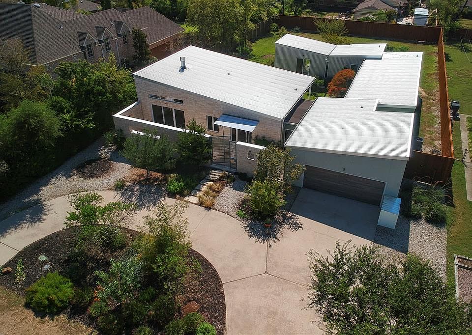 Mid-century modern 2004 custom-built designed by AIA award-winning architect Richard Wintersole. This Preston Hollow home is on an oversized .461-acre lot & offers the best of both worlds-city living w room enough to breathe. Sleek lines w elevated ceilings & expanses of glass walls & windows provide incredible natural light w awesome outdoor views. Southern yellow pine lines the ceilings in kitchen liv area, master bedroom & covered patio. Open concept kitchen w cherry & maple cabinets. Relax inside w the double-sided fireplace or in one of the multiple outdoor areas w plush landscaping. Lots of updates since 2019; interior paint, new BOB cedar fence, new metal roof, new stucco & 1 hvac zone & 2 AC condensors