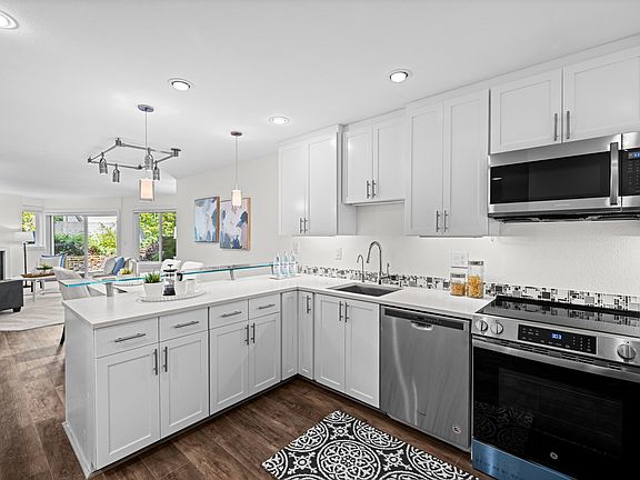 Enjoy sleek quartz countertops, elegant tile, and stainless steel appliances, along with an in-unit washer and dryer for ultimate convenience. Recent upgrades include a new range, washer/dryer, fresh paint, and carpet move-in ready for a fresh start.