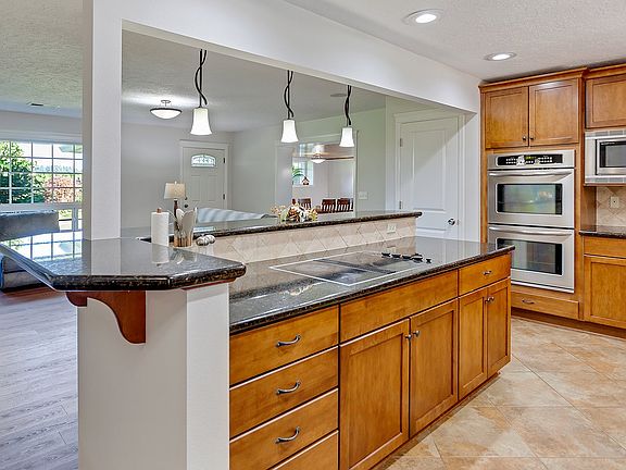 - Features: Builtin Refrigerator, Dishwasher, Eat Bar, Eating Area, Microwave, Pantry, Updated Remodeled, Double Oven, Solid Surface Countertop, Tile Floor