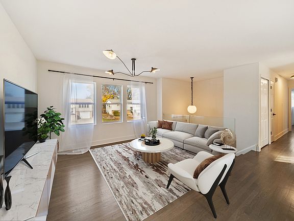 Super bi-level with standout style. Step into an open main floor featuring refinished oak hardwood floors and a flexible layout that easily adapts between dining, living, and kitchen areas. The white-oak, two-tone kitchen adds an elevated touch, complete with all-new Samsung stainless-steel appliances, an oversized sink, and modern finishes. From the kitchen, walk out to a two-level deck designed for outdoor gatherings.The spacious primary and second bedrooms sit near a refreshed bathroom showcasing a quartz vessel sink, tasteful tilework, and shiplap accents. The lower level includes an additional bedroom and a versatile recreation area ideal for a home office, media room, or play space. Newer mechanicals (HVAC, Water Heater, & Electrical Panel) round out the lower level in addition to a newer roof. An oversized yard and deck create plenty of space to enjoy warm-weather days. The perfect home with room to grow.