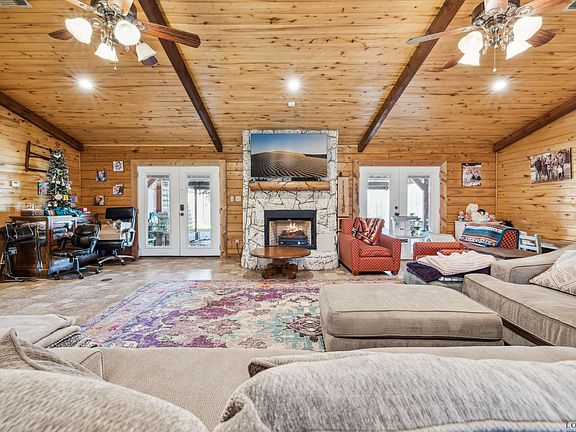 Welcome to country living at its finest—right here in the heart of Deep East Texas! This custom-built Satterwhite log home sits on 37.21 beautiful acres in the sought-after Garrison ISD. From the moment you pull up, you’ll fall in love with its rustic charm and peaceful setting. Inside, you’ll find granite countertops, stainless steel appliances, a double oven, and even an ice maker—perfect for family gatherings or holiday meals in the large custom kitchen. The spacious living room features wood-lined ceilings and a cozy stone fireplace, adding that warm, country feel. With two primary suites and two split bathrooms for the other bedrooms, everyone gets comfort and privacy. Outside, enjoy mornings and evenings on your big front or back porch, overlooking your land. There’s also a 30x50 shop, a 24x30 concrete slab, and a spot ready with utilities for an RV or mobile home. Whether you want to run cattle, garden, or just breathe in the quiet, this property has it all. A rare find with this much charm and functionality—call today to schedule your private showing!