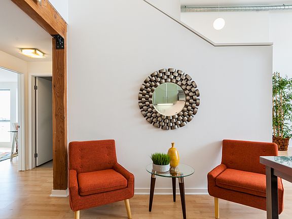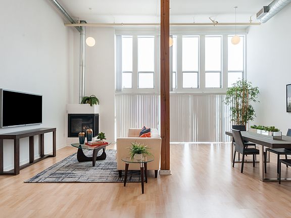 Top-floor gorgeous penthouse unit in the WestEnd Lofts. Two-story floor to ceiling windows allow for an abundance of natural light throughout. An open concept layout includes a grand room which encompasses a fireplace, the chefs kitchen, dinging, and living rooms. The kitchen is complete with stainless steel appliances, contemporary cabinets, ample storage, and more. Upstairs is the large master with extra sitting area/office space, large window, and bathroom. The main level has a generous sized second bedroom and bathroom. In-unit laundry, 2 car parking. Building amenities including gym, spa, pool, fire pit, common area lounge, guest parking, and bike storage. Conveniently located to all that the Marina has to offer.
