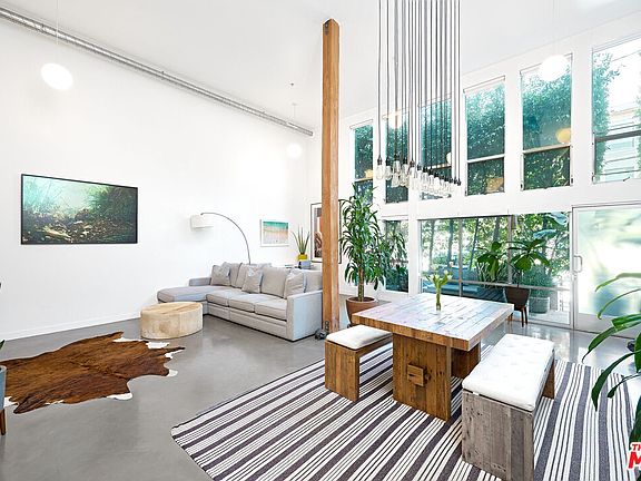 Experience the ideal fusion of loft and coastal living in this stylish home, boasting 17-foot ceilings and sleek polished concrete floors. The modern open kitchen seamlessly flows into the living area, creating a perfect space for entertaining. This split-level unit includes a bedroom on each floor, each with its own en-suite bathroom. With floor-to-ceiling windows, the home is flooded with natural light and enhanced by custom built-ins. The patio leads directly to Glencoe Ave, offering convenient access for errands and dog owners. Centrally located, you're just minutes from the Marina, Abbot Kinney, and the beach, as well as blocks away from Equinox, an AMC dine-in theater, and a selection of upscale dining and shopping venues. Benefit from two secure parking spaces in the gated garage. The Westend community offers a designer courtyard with fire pits, plus amenities like a gym, dipping pools, and a BBQ area to enjoy relaxing LA evenings.