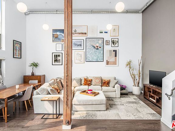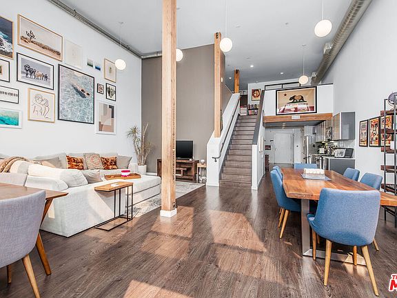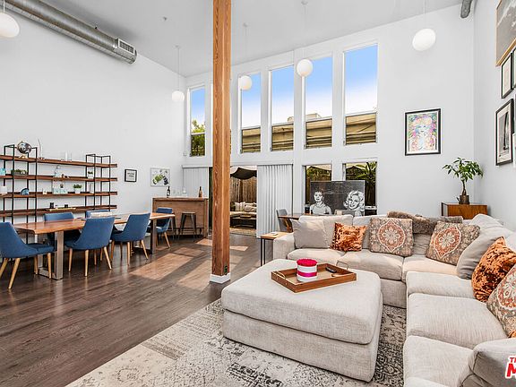 Step into this beautiful two-story modern loft with an open kitchen & south facing sun-drenched living room. Enjoy the 18' soaring ceilings and, of course, your own serene, private terrace. This spacious 2 bedroom/2 bath functional townhouse style loft has motorized blinds in the living area, Bluetooth speaker shower head, heated toilet seats, wi-fi controlled thermostat, brand new flooring throughout, stylishly renovated bathrooms, recessed lighting and a front load washer/dryer. Your master suite awaits you upstairs with a generous walk-in closet. The kitchen has stainless steel appliances, Italian cabinetry & Caesarstone counters. There is great storage for all of your beach gear and if you are looking for more space that has a great vibe, then you have found it! Community features a dipping pool, spa, gym, BBQ and fire pit. Located in the Marina Arts District, around the corner from Marina Marketplace and just over a mile from the beach. You can't beat the location!
