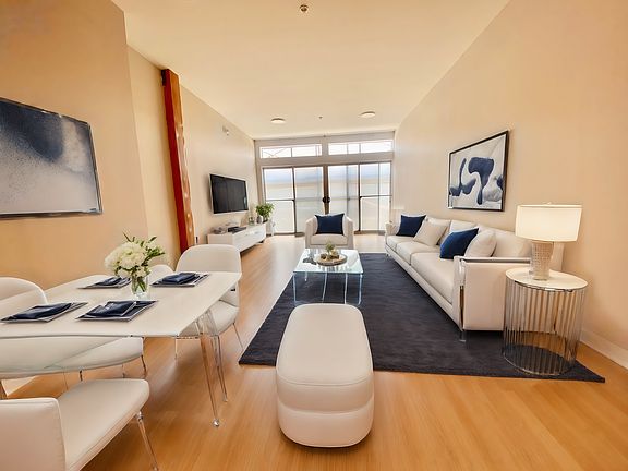 Location, Location, Location! Welcome home to the WestEnd Lofts in the prestigious Marina Arts District. This 1,260 square-foot, 2 bed/2 bath unit boasts a huge open kitchen and living area, ideal for entertaining or working from home. The loft-style unit features elegant laminate wood floors, exposed ducts, wood beams, and accent wallpaper. The gourmet kitchen is equipped with top-of-the-line stainless steel appliances, including a brand-new dishwasher and a gas stove with a Viking hood. Custom cabinetry, including a wine rack, provides plenty of storage, and sleek quartz countertops give the kitchen a clean and modern aesthetic. There is also an in-unit washer and dryer as well as a full hallway closet with ample storage. The unit has a programmable wifi Nest thermostat to keep your home at the perfect temperature all year long. The primary bedroom features a deep mirrored closet and an en-suite bathroom with a double stall shower, equipped with a handheld 6-function Moen Engage Magnetic showerhead and white subway tile. The large secondary bathroom is adjacent to the secondary bedroom and kitchen, ideal for guest access. With a deep soaking tub, it is perfect for a relaxing bath. The modern style extends into the beautiful interior courtyard originally designed by the Kor Hotel Group with giant potted trees, fire pits, and tranquil fountains a great space to unwind after a long day! Amenities also include a sun deck with a hot tub, cool dipping pool, barbeque grill, and dining area. The fully equipped private gym features Peloton Bikes, cardio equipment, machines, free weights, and an area for yoga or stretching. This fully-secure luxury building is equipped with gated, subterranean parking. Guests and deliveries can enter via the Butterfly app. The resident will have two assigned parking spots, conveniently located adjacent to the elevator along with an assigned storage area. Unique to this unit, it has a PRIVATE, DEDICATED hardwired Enel-X JuiceBox 40 EV CAR CHARGER! The charger works with the garage wifi for efficient charging and is compatible with multiple adapters, including Tesla. The building is just steps away from the Villa Marina Marketplace, including Starbucks, Gelson's Market, Equinox, Coffee Bean, AMC Movie Theatres, Club Pilates, CorePower Yoga, Ruth Chris Steakhouse, and more! Located just about a mile from the beach, convenient access to the 90 freeway, and nearby to the new Cedars Sinai Medical Center. You cannot beat this fantastic location, in a safe and secure modern building! Owner pays for water and trash. Tenant to pay for gas and electricity.