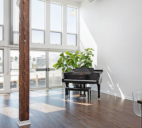 This stunning two-story penthouse, ultra-modern loft with an open kitchen concept and industrial exposed features at the West End, Marina Arts District of Marina Del Rey was built-in 2009. The residences ceilings soar to over 17 feet, while views vary from the south and glimpses of the ocean to the West. Floor to ceiling windows with a fireplace, exposed wood columns, stainless appliances, and European fixtures complete this fine living space. The spacious 2 bedroom and 2 bath functional townhouse-style loft offers an open living space with tons of natural light and wonderful breezes, brand new flooring throughout, a great number of storage closets, and washer and dryer hookups. The master suite has a generous closet. The community hosts a variety of amenities including a pool, a jacuzzi, an outdoor lounge with a grill, a light-filled fitness center, and a communal fire pit. The underground parking also has a bike storage locker and parking conveniently located near the elevator.