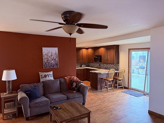 Charming 1.5-story farmhouse on nearly an acre (.97 ac) of peaceful country living, just minutes from town! This 4-bedroom, 2-bath home offers 2,069 sq ft of comfortable space plus a massive detached 2-car garage with electricity, 2 sources of heat and Insulated--perfect for hobbies, storage, or a workshop. Step inside to fresh, updated flooring throughout the main level. The efficient forced-air furnace and central A/C (both recently updated) plus LP gas heating keep you cozy year-round. Patio doors open from the living area to an expansive deck, ideal for morning coffee, summer BBQs, or watching sunsets over your private backyard. With four spacious bedrooms (including a convenient main-floor option), two full baths, and plenty of natural light, this home blends classic farmhouse charm.