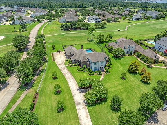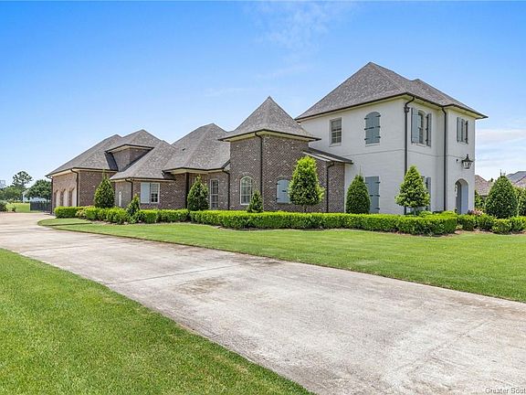 Two Story Country French inspired home situated on a just over one acre corner lot on the golf course in Graywood Plantation. Design includes brick accents, reclaimed wood beams and wood flooring throughout. A warm and inviting space, it is infused with current transitional styling. Handsome bricked foyer leads to living room with fireplace flanked by builtins, all overlooking gorgeous pool and outdoor living space. Dining room creates a casual living environment as it opens to the well appointed kitchen with painted cabinetry and oversized working island with bar seating. Gas stove with double ovens, pot filler, builtin refrigerator and separate freezer with additional wine cooler. Roomy pantry, coffee bar and additional wine storage room. Primary ensuite is downstairs in addition to a second ensuite off the foyer. Primary is tucked away and features brick accent wall and stylish bath with dual vanities, dual closets and large multi-jetted walk-in shower with separate tub. Upstairs has an open den flanked by two additional ensuites. Large gameroom over the three car garage. Spacious laundry with ample storage and workspace. There is a powder bath and a second half bath outside. The gunite pool and hot tub have brick coping with oversized outdoor living space including fireplace, outdoor kitchen boasting gas cooktop, grill, green egg and full size refrigerator all tucked away and private from the golf course. Beautifully landscaped.