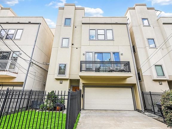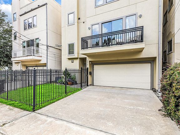 Gorgeous free-standing home located in the heart of desirable Rice Military! NEW roof ('24), recent stucco work ('25), newer ACs ('21 & '23). Features a private double-wide driveway providing hard-to-find parking! Enclosed front grass space; ideal for pets. Spacious rooftop terrace; perfect for outdoor entertaining! Light & bright 2nd floor living w/ an open floor plan. Stunning remodeled chef's kitchen equipped w/ oversized island w/breakfast seating, farmhouse sink, SS appliances. Large family rm w/ charming balcony access + dining space w/newer light fixture + powder room. 3rd floor expansive primary suite w/ bath w/ separate tub, shower, dual sinks. Add'l guest beds on 3rd & 1st floors each w/ an ensuite bath + walk-in closet. Ample storage throughout. Walk to tons of popular restaurants, nightlife & shopping! Bike to Memorial Park, Buffalo Bayou Park & Spotts Park! Easy access to Downtown, 610, 290, 45 & I10. NO carpet, LOW maintenance living. NO HOA!
