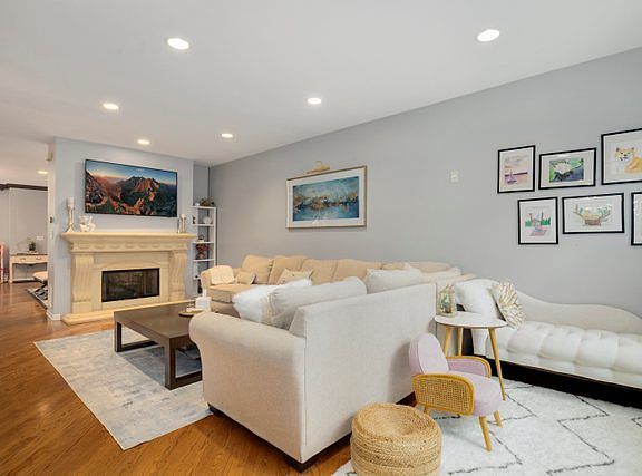 Fabulous townhome with beautiful pond view on tree lined street. Terrific layout offers 2200 sf above grade plus a finished basement. First floor includes a see-through fireplace with a custom stone surround mantel between the formal living room and family room. The eat-in kitchen has a huge granite center island, stainless steel appliances, and glass backsplash. It opens completely to the adjacent family room. Outside the back door you'll find an 8' privacy fence enclosing a charming patio that gets terrific sunlight for growing plants. The 2nd floor includes 3 bedrooms, 2 baths plus a cozy office. The expansive primary suite has cathedral ceilings, a walk-in closet, and ensuite 5 piece bathroom with soaking tub and double vanity. On the lower level is a full finished basement with a movie theatre, surround sound, bedroom, full bath and exercise room. Sellers have recently upgraded the water heater and water softener, HVAC, reverse osmosis water filtration and added a level 2 electric vehicle charger.