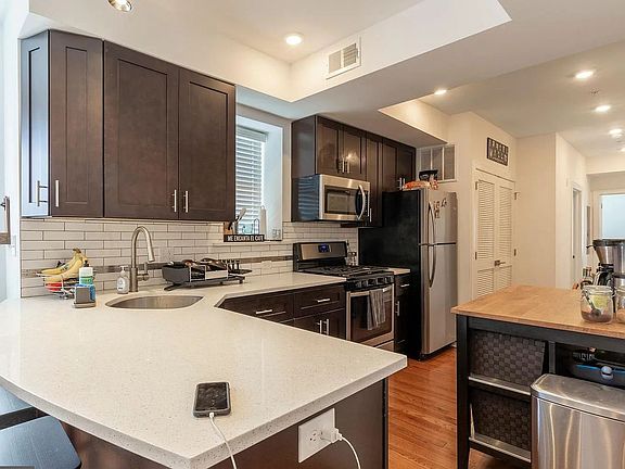 This sunny two bedroom/one bath features a private deck, hardwood floors, quartz countertops, stainless steel appliances, bay windows and recessed lighting. The must-have amenities include central air/heat, built-in microwave, dishwasher, garbage disposal, gas stove, ceiling fans and in-unit washer dryer. 4215 Manayunk Avenue is steps from Hilltown Tavern, The Couch Tomato Bistro, Mi N' Tea, The oat's Beard, Scanlon's Saloon, Sweat Fitness and Pretzel Park. Additionally, this property is in close proximity to the I76 on-ramp and SEPTA's Regional Rail Wissahickon Station. Renters pay for Gas, electricity and a flat 35/mth fee for water. Dogs and cats are welcome upon the Landlord's approval with a 350 non-refundable pet cleaning deposit for dogs +35/mth pet rent/cats 250 non-refundable +25/mth pet rent. All square footage is an estimate. PLMG is not liable for any discrepancies regarding estimated square footage that is provided by public sources, assessors, agents, advertisements or any other source.